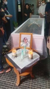 Sesampainya di rumah Bu Tyas, para siswa dan siswi SMK Strada Budi Luhur diizinkan untuk melihat jenazah Bu Tyas, yang berbakaian kebaya hitam, dan sudah berbaring di dalam peti berwarna putih. Kita berdoa secara pribadi di depan jenazah Bu Tyas untuk mengenang jasa dan kebaikan yang telah Ia lakukan. Sekitar pukul 10.00 WIB lebih, misa dimulai. Seluruh keluarga dan tetangga Bu Tyas, guru, alumni, serta siswa dan siswi SMK Strada Budi Luhur mengikuti misa dengan tenang sampai misa selesai.