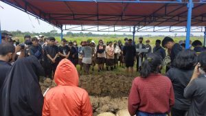 Setelah misa, siswa dan siswi diperbolehkan untuk memengang bendera kuning selama perjalanan menuju makam. Bu Tyas dimakamkan di TPU WANAJAYA. Sesampainya di pemakaman, kita mengikuti acara pemakaman, dimulai dari meletakkan peti kedalam lubang makam, pemberian air suci kedalam makam, melemparkan tanah kedalam makam, dan lain sebagainya, yang dilakukan oleh Romo dan keluarga Bu Tyas. Setelah itu, makam segera ditutup kembali menggunakan tanah. Ada 3 orang bapak-bapak yang membantu mengubur lubang makam tersebut. Selama proses penguburan, kita semua berdoa Rosario hingga proses penguburan selesai. Setelah pemakaman selesai, para siswa dan siswi serta guru-guru Strada Budi Luhur segera pulang ke rumah masing-masing.